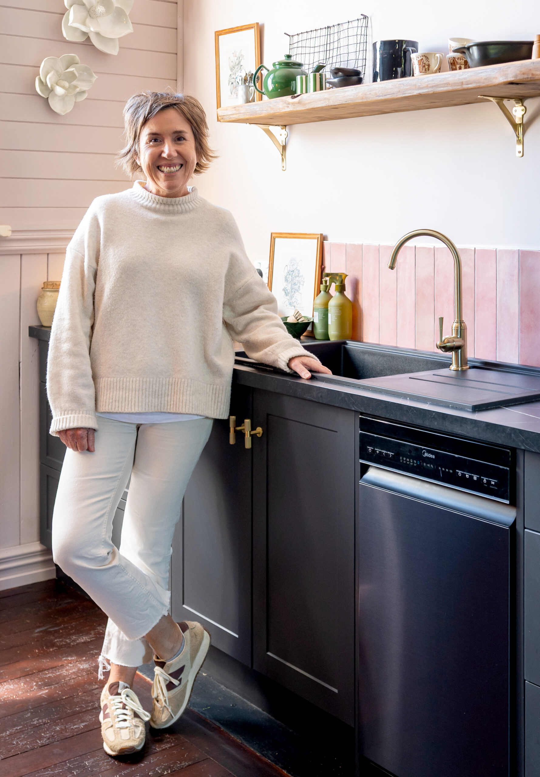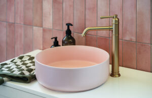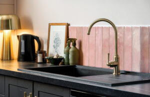 In the kitchen, the Cromford Sink Mixer becomes a quiet hero. Its elegant, arched silhouette and warm brushed finish complement the soft pink tiles and dark benchtop, striking a balance between old-world charm and contemporary design. This is where Cromford shines: it doesn’t compete with heritage. Rather, it enhances it.