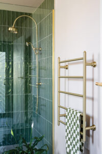 After two years without a bathroom, the finished bathroom space is more than functional. It is deeply personal. Featuring the Cromford Twin Shower, Shower / Wall Mixer, and Heated Towel Ladder, the bathroom blends tactile luxury with visual warmth. Rich green tiles provide a dramatic backdrop, while the Brushed Gold fittings introduce softness and continuity with the rest of the home. “Getting in that shower every morning is just bliss.”