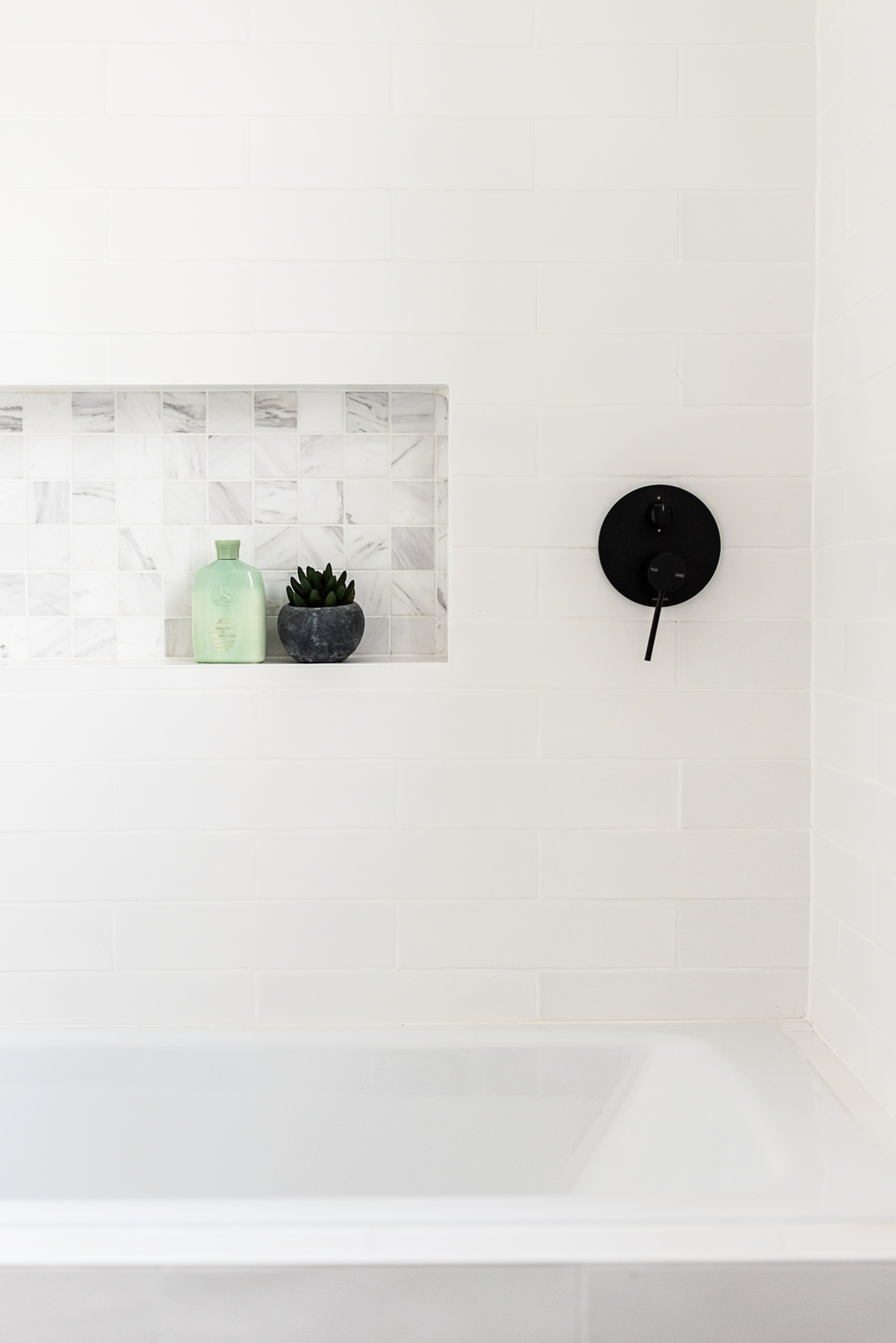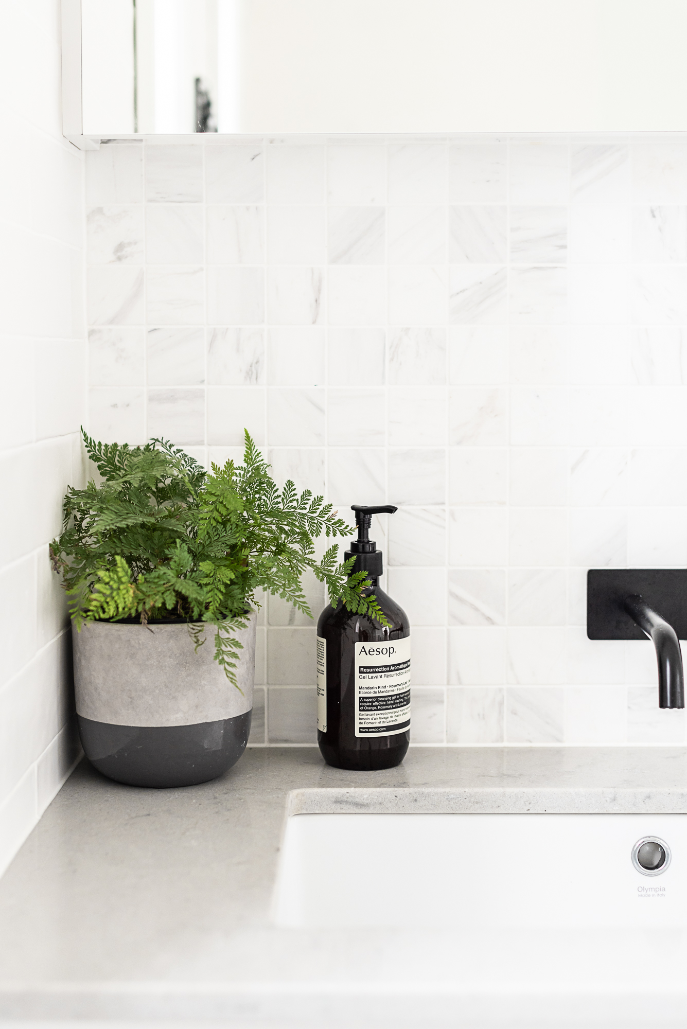 The black accents are the perfect little bit of strength to a very soft colour palette. I always think black tapware acts like mascara for a bathroom.