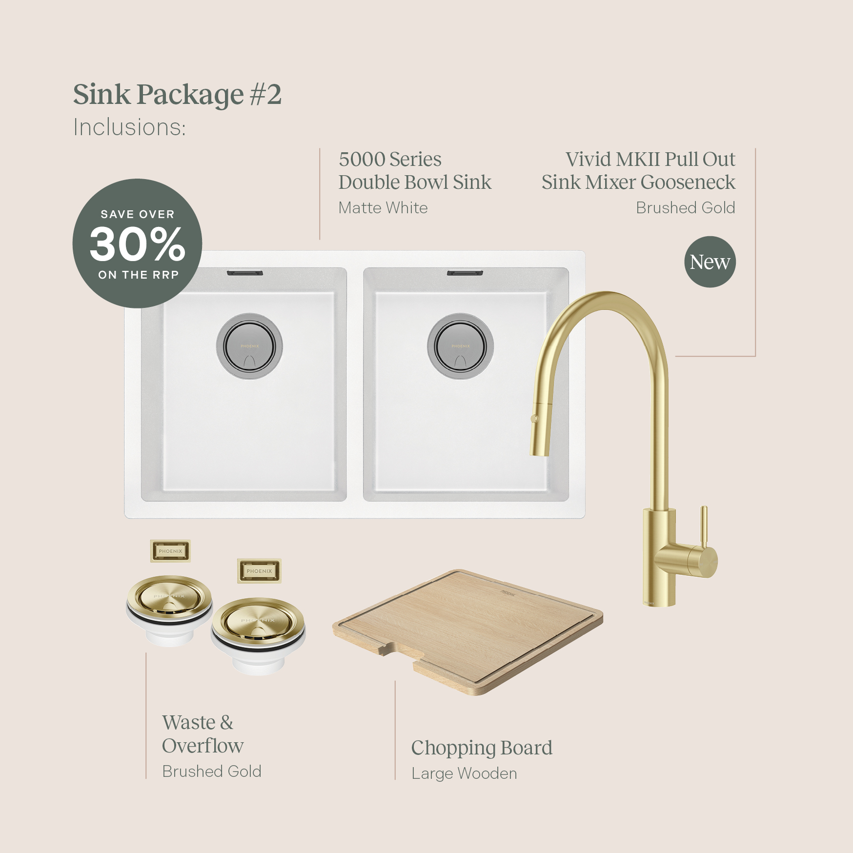 Sink Package 2 – Matte White Sink & Brushed Gold Mixer